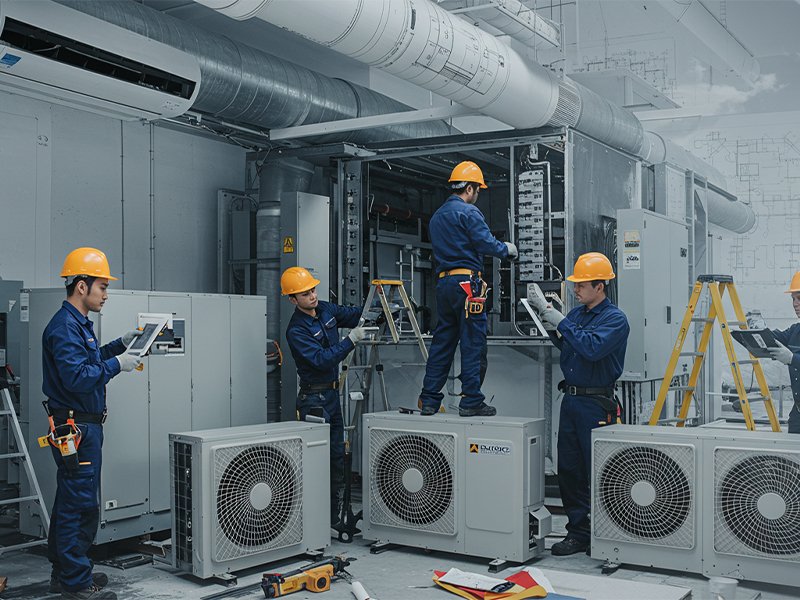 يقوم الفريق الفني بإعداد التصاميم والمخططات التنفيذية (Duct & Piping) باستخدام أحدث البرامج لضمان توزيع مثالي للهواء