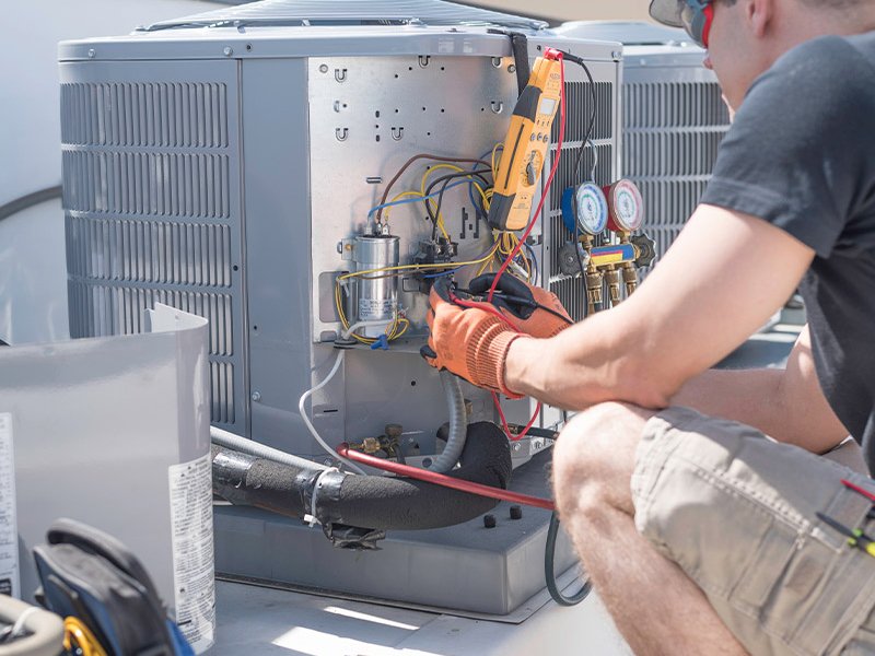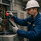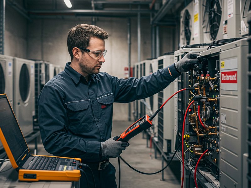 يشمل تنظيف الملفات الداخلية والخارجية، تغيير أو تنظيف الفلاتر، فحص أحزمة المراوح والكمبروسرات، قياس التيارات الكهربائية وضبط الشحنات وضغط الغاز، فحص الحساسات والثرموستات، ومعايرة أنظمة التحكم.